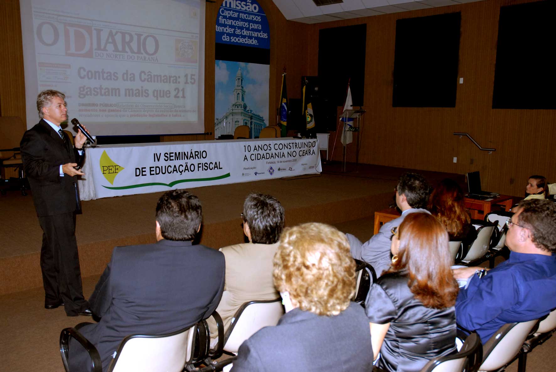 O “Seminário 10 anos da Educação Fiscal no Ceará” proporcionou discussões sobre temáticas importantes relativas às ações de educação fiscal e homenageou personalidades como Liduíno Lopes de Brito, Marta Barcelos e Nilson Fernandes, do Projeto Cidadão Desde Pequeno, que construíram e consolidaram as ações do programa na sociedade cearense.