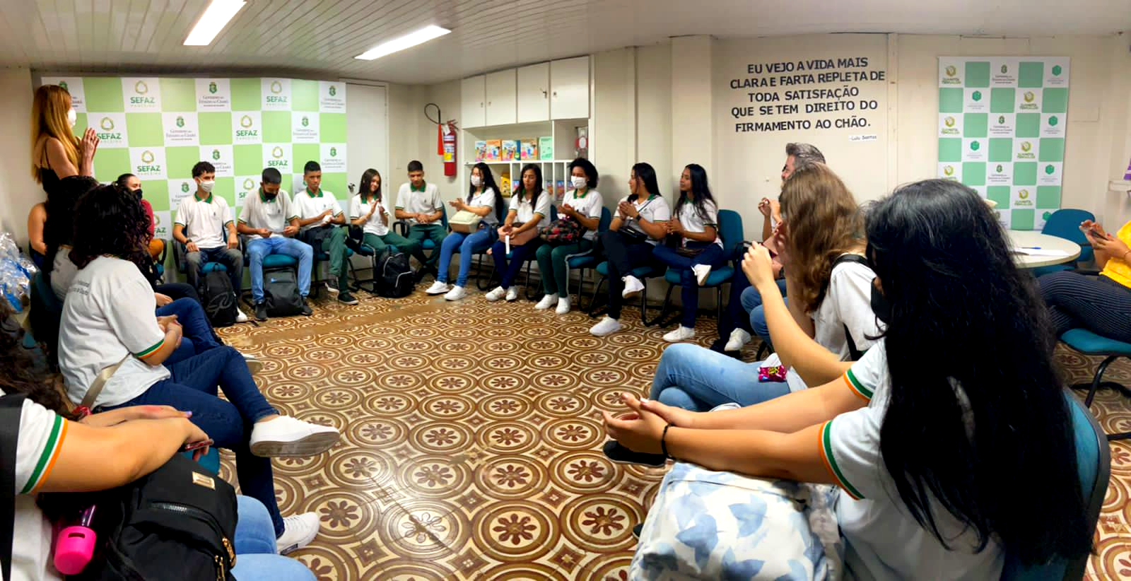 Nas visitas, os alunos conheciam a exposição, que na época era distribuída nos três pisos da Sede III, da Sefaz e aprendiam sobre a história da Instituição, além de assistirem a uma das videoaulas do Programa de Educação Tributária.